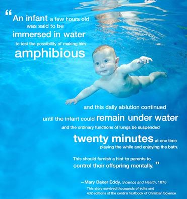 - An infant a few hours old was said to be immersed in water, to test the possibility of making him amphibious; and this daily ablution continued until the infant could remain under water, and the ordinary functions of lungs be suspended twenty minutes at one time, playing the while and enjoying the bath. The infant is wholly controlled by its parents’ belief; addressing the mother mentally, we have stopped the moaning and restlessness of her babe, but could not affect the child, except through its mother.