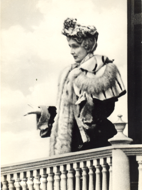 The cover image of Mary Baker Eddy, by Gillian Gill breaks (fig. 4) away from the “determined yet serene woman” and “kindly grandmother” themes. Gill’s book uses a much starker, younger Ms. Eddy, shrouded in a thick black shawl, and oppressive-looking dress, a very different from the image of Ms. Eddy (fig. 5) in her finery. In fig. 5, Ms. Eddy does look like a bit like a leader, political figure, or the Pope greeting the faithful followers, above them all on a balcony, gracing them with her presence. Her hat looks like a crown, and her robes are vaguely royal in nature.