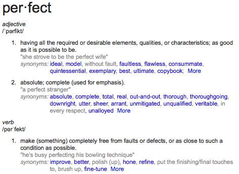 Perfect as a verb is a bit more manageable, it is possible to refine something to improve it, but you also have to know when to step back and acknowledge that sometimes it is good enough. Finding that balance of refinement and acceptance that it is good enough is tricky, and something I struggle with daily.