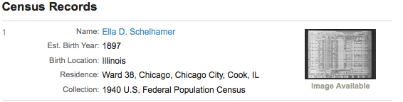 I did a quick google search for Ms. Schelhamer, and according to the archives.com records, she shows up in 12 census records and there is no record of her birth or death – I did not pay for membership, but I did get a screen shot of the free results: